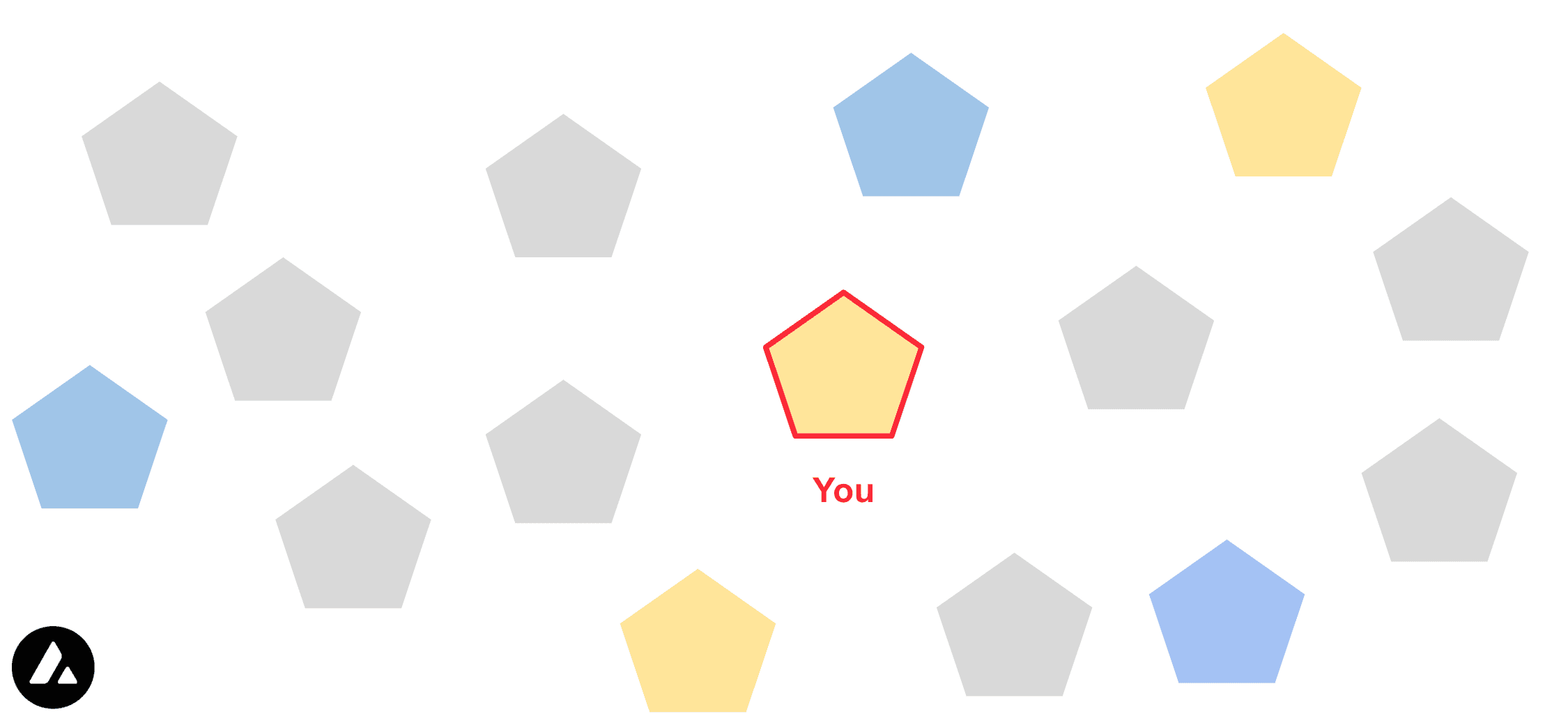Let's visualize this with an example. You are a validator in a set of validators that is performing the Avalanche Consensus protocol to agree on whether to send the funds to Charlie (yellow) or to Bob (blue). It is important to understand that none of the validators really cares whether it is going to be yellow or blue, as long as all correctly operating validators decide for the same outcome at the end of the process. The starting preference is chosen randomly by each validator.