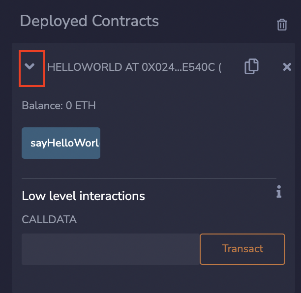 Now, we can expand it by selecting it from the "Deployed Contracts" tab and test it out.