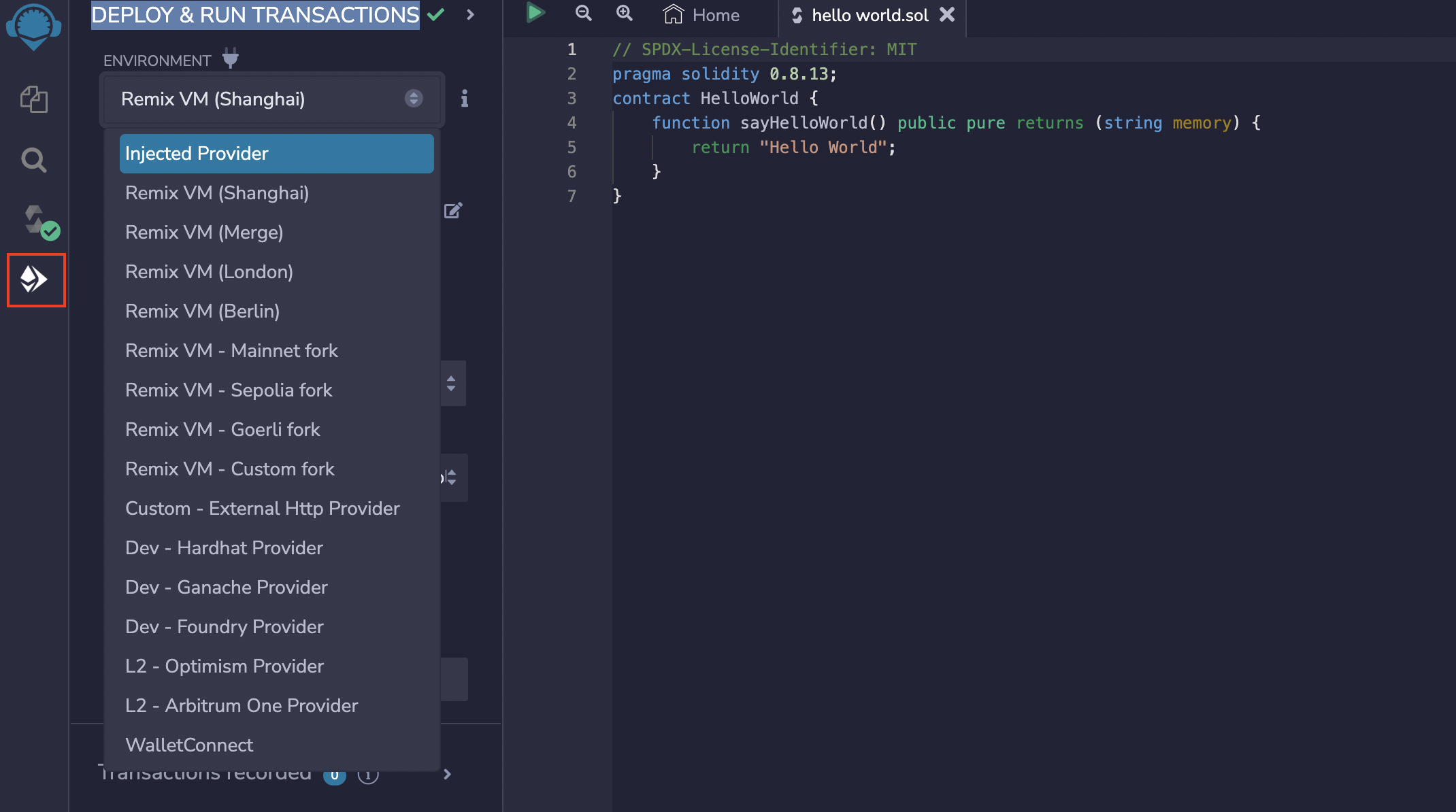 Open Remix → Select Solidity